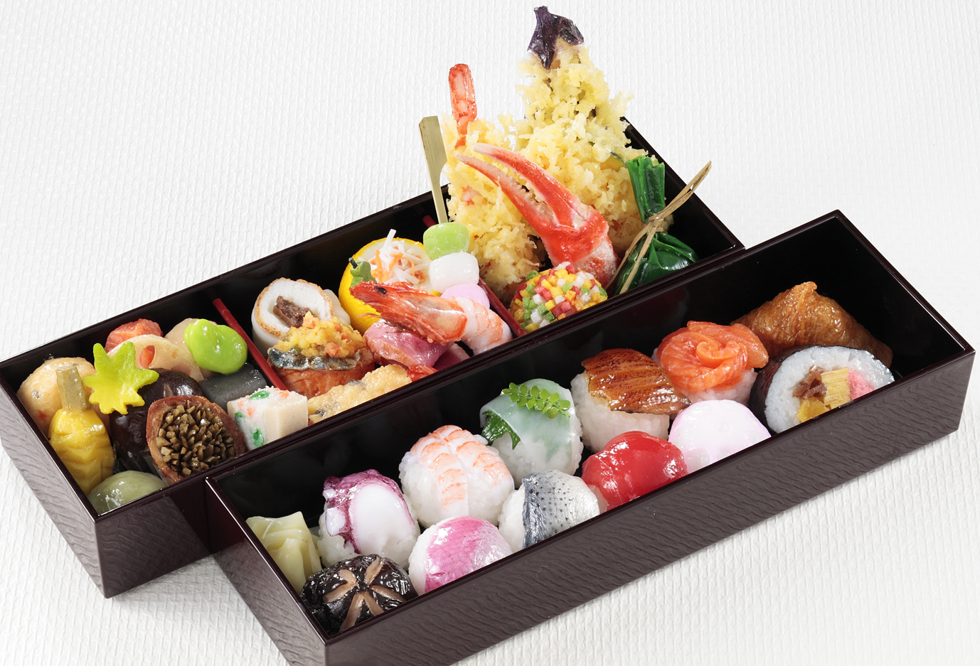 Food samples were born in the late Taisho and early Showa periods and were called "cuisine models" at that time. It is believed that the first time these food samples were widely recognized was when they were displayed in the temporary store of the department store Shiroki-ya Nihonbashi Honten, which opened on November 1, 1923. The model of food was placed on the shelves, and the ordering method of purchasing a meal ticket for the appropriate dish was used to streamline the ordering process, resulting in an increase in the turnover rate of the diner and a four-fold increase in sales. Since then, meal tickets and food samples have become widely used in restaurants.